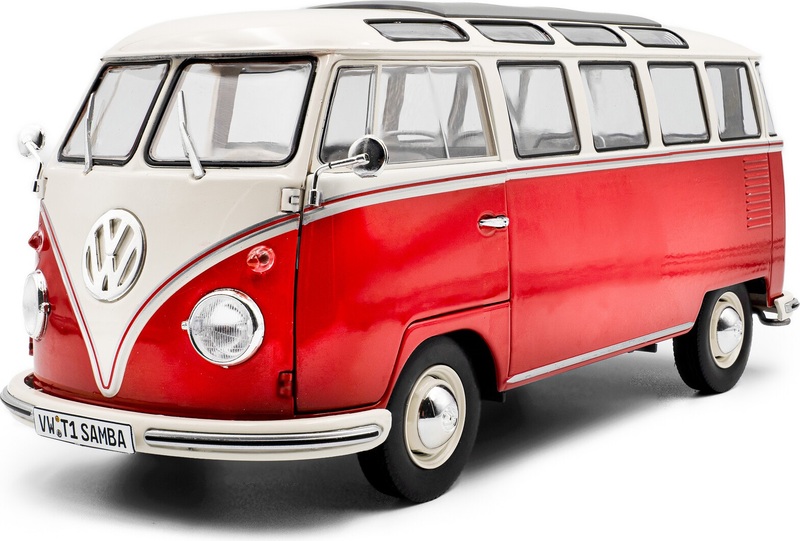 1:18 VOLKSWAGEN T1 SAMBA RED / WHITE 1962 - SOLIDO