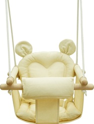 Komfort, bezpečie, zábava... medvedík presne vie čo spokojné bábätká potrebujú! Táto detská hojdačka ponúka nielen množstvo hodín zábavy ale aj aktívny odpočinok. Konštrukcia z bukového dreva a sedátko zo 100% bavlny zaisťujú plné pohodlie a bezpečnosť pri hojdaní. Laná s 2 karabínami sú výškovo nastaviteľné (až 180 cm). Vďaka tlmeným farbám a jednoduchému dizajnu je hojdačka tiež brilantným doplnkom do izbičky!
