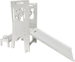 Umožňuje najmenším byť v úrovni pracovnej dosky, vidieť všetko, čo robíte a tvoriť tak priamo s Vami – vďaka tomu máte aj neustály dozor. Veža sa skladá zo stojacej plochy, na ktorej dieťa stojí, schodíka, po ktorom sa na ňu dostane az ohrádky okolo. Vďaka svojej multifunkčnosti sa dá s vežou aj „hrať“. Obsahuje magnetickú tabuľku s písmenami a číslicami av rozloženom stave je doplnená o šmýkačku. Pri používaní nenechávajte učiacu vežu v priestore, ale vždy vežu umiestnite stranou oproti schodíku k pevnej prekážke (kuchynská linka a pod.).
