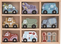 Obsahuje rôzne vozidlá - cisternu, hasičské a policajné auto, bager a ďalšie, ktoré inšpirujú k predstavivej hre a podnecujú detskú fantáziu.