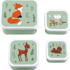 A Little Lovely Company - sada štyroch krabičiek na desiatu - kamaráti z lesa - zelená