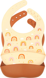 Súprava dvoch silikónových podbradníkov, jeden s motívom dúhy a jeden v doplnkovej jednofarebnej verzii. Podbradníky sú vodeodolné, ľahko sa čistia a majú záchytné predné vrecko. Podbradníky majú nastaviteľnú veľkosť a možno ich ľahko zrolovať a uložiť. Silikónové podbradníky sú navrhnuté tak, aby deti boli pri jedle v pohodlí a čistote.