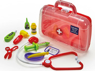Doktorský kufrík Addo obsahuje všetky nástroje potrebné na vyšetrenie a vyliečenie pacientov, medzi nimi stetoskop vydávajúci realistické zvuky a otoskop, ktorý svieti.
