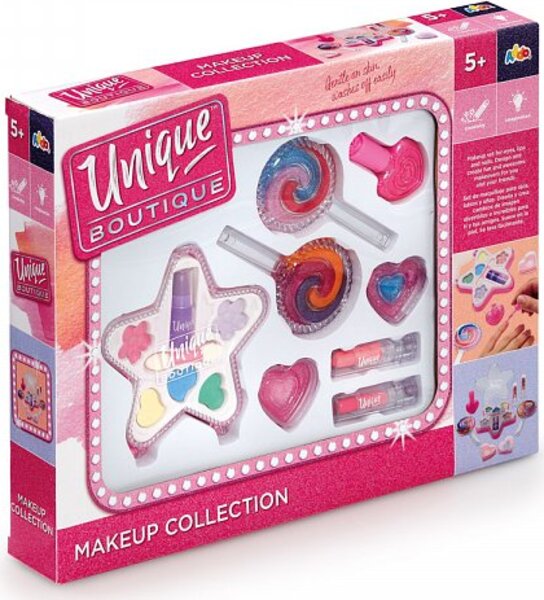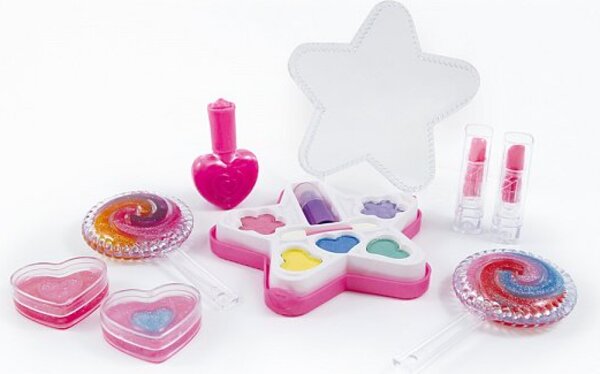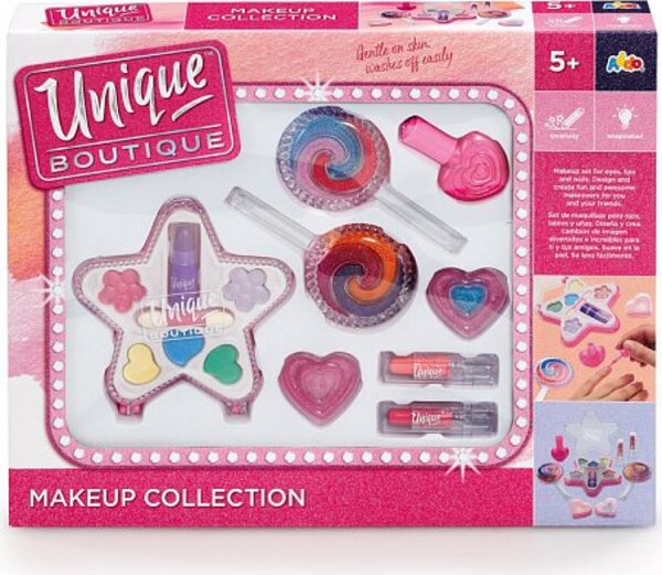 Vytvorte si nový úžasný vzhľad s jedinečnou kolekciou make-upu Boutique od ADDO. V sade nájdete všetko, čo potrebujete. Lak na nechty v tvare srdca. Roztomilé puzdro na make-up v tvare hviezdy, rúž a päť jasných očných tieňov. Produkty sú šetrné k pokožke a ľahko sa zmývajú.
