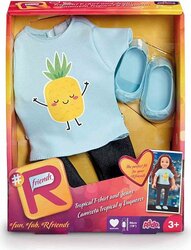 - Táto sada obsahuje tričko s ovocím, pohodlné džínsy a topánky Dolly.