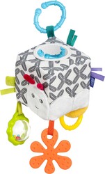Výrazné čiernobiele kontrasty, jasné farby a kombinácia rôznych materiálov hravou formou podporujú senzorimotorický vývoj bábätka. Vďaka praktickému C-krúžku možno túto všestrannú interaktívnu kocku jednoducho pripevniť kamkoľvek a rýchlo sa stane verným spoločníkom vášho dieťatka.