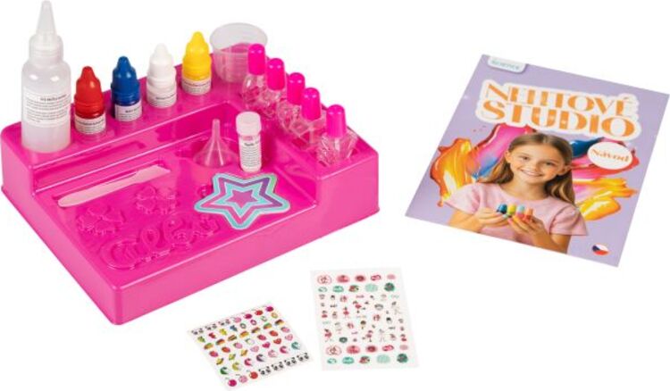 Vyrobte si netoxický priehľadný alebo farebný lak na nechty s kreatívnou sadou Nechtové štúdio z edície Albi Science. Nechty môžete opilníkovať pilníkom, nalakovať a dozdobiť svietiacimi samolepkamii.