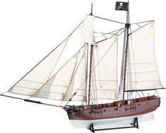 Stavebnica statickej makety historickej lode AMATI Adventure pirátska loď z roku 1760 v mierke 1:60, kit. Pirátska loď známych pirátov Edwarda Anglického z afrických vôd a John Calico Rackam, ktorý desil Indiu s pirátskou nevestou Annou Bonny Westovou. Drevené diely, kýl a obšívka sú rezané laserom, obsiahnuté sú plachty, lanové, stožiare, kovania, doplnky, podrobný obrázkový návod na stavbu s nemeckým popisom a plánmi.