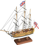 Stavebnica statickej makety historickej lode, AMATI H.M.S. Bounty 1:135 First step kit. Historické lode sú jednými z najobľúbenejších lodných modelov, preto bola vytvorená séria First step kit, ktorá je určená pre začiatočníkov. V sete je hotový drevený trup lode, kýl s výrezmi a drobné príslušenstvo.