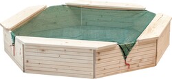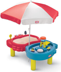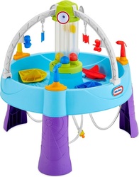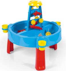 Sada obsahuje: Skladací stolík s dvoma oddelenými priestormi, záklopné veko, mlynček na piesok a vodu so stojanom - výška 28 cm, vodnú pumpu so stojanom, kanvičku 0,5 l, lopatku a hrabličky.