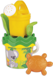 Kýblik, kanvičku 0,5 l, sitko, lopatku, hrabličky a tvorítko v tvare korytnačky.