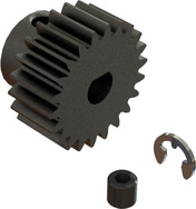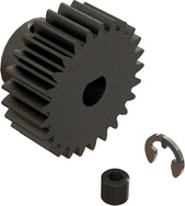 Tuningový diel pre RC modely áut Arrma 3S 4WD Bigrock, Granite, Senton, Typhon: pastorok 15T 0.8M Safe-D5. Otvor pre hriadeľ s plôškou v tvare D zaistí pevné spojenie aj keď sa uvoľní pastorok.
