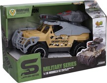 Vojenské auto s delom a efektmi poteší každého chlapca.