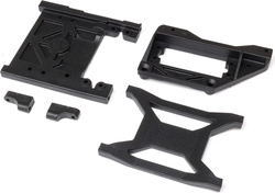 Podvozok bol optimalizovaný praktickým vývojom na súťažiach a preto je ľahší, má nižšie položené ťažisko a dá sa nastaviť. Základ tvorí hliníkové bočnice šasi SCX10 Pro 4WD, ktoré vytvárajú základnú kostru. Pre montáž tlmičov si môžete vybrať pozíciu, ktorá vám bude vyhovovať. 3-bodové a 4-bodové zavesenie, nové hliníkové tlmiče plnené olejom a kompletné guľkové ložiská, udržujú stály a konzistentný výkon.