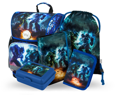 BAAGL 5 SET Ergo Roboti: aktovka, peračník, vrecko, dosky, box