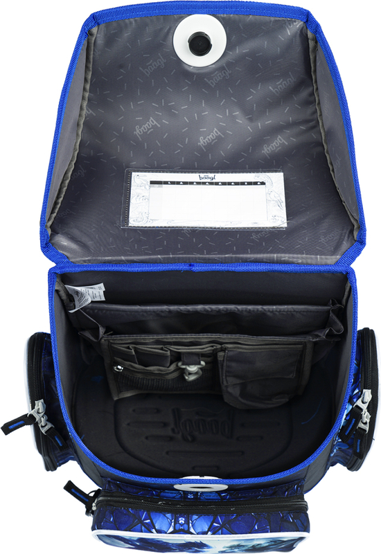 • Vnútri aktovky je priehľadná kapsa s rozvrhom a vnútorný organizér umožňujúci rovnomerné rozloženie hmotnosti.