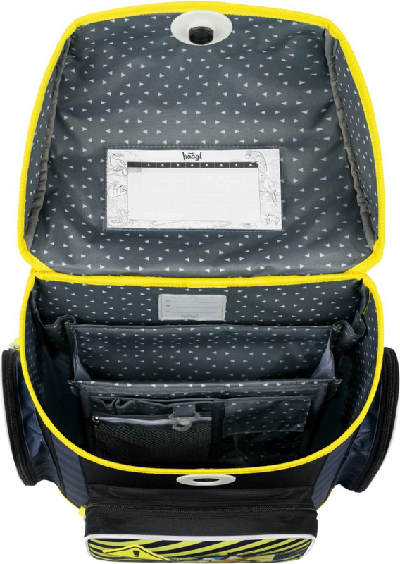 • Vnútri aktovky je priehľadná kapsa s rozvrhom a vnútorný organizér umožňujúci rovnomerné rozloženie hmotnosti.