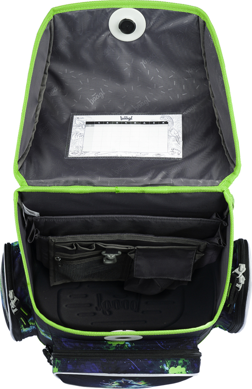 • Vnútri aktovky je priehľadná kapsa s rozvrhom a vnútorný organizér umožňujúci rovnomerné rozloženie hmotnosti.