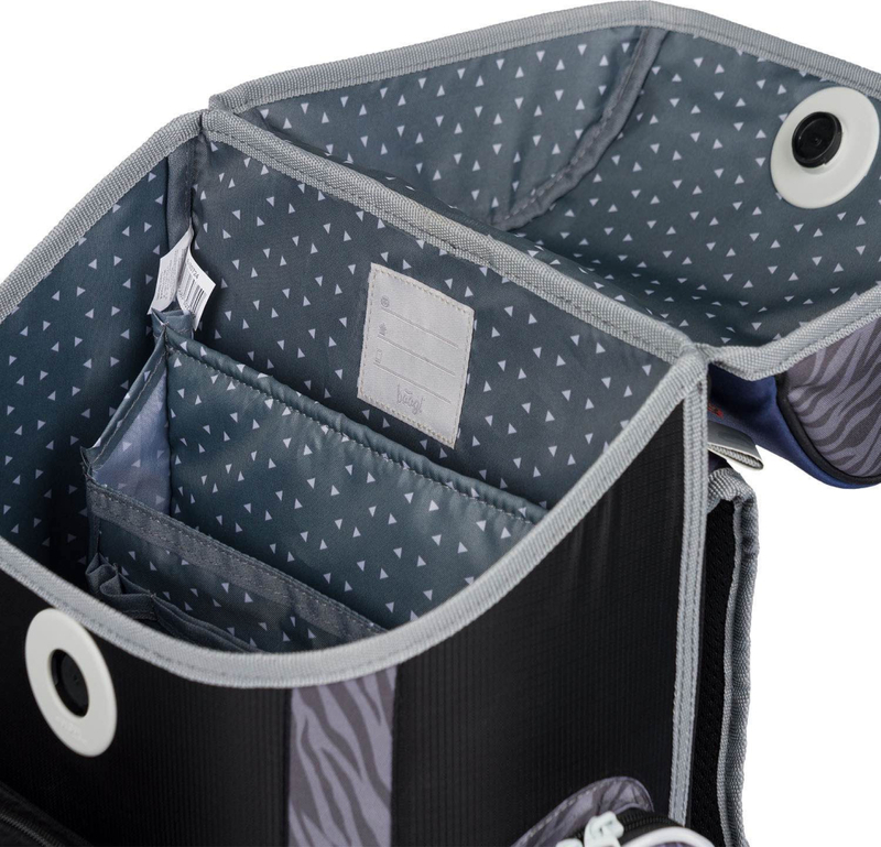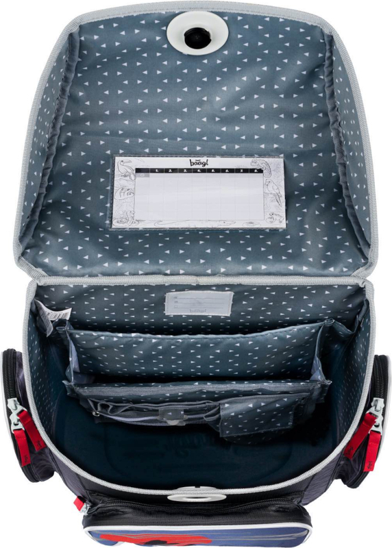 • Vnútri aktovky je priehľadná kapsa s rozvrhom a vnútorný organizér umožňujúci rovnomerné rozloženie hmotnosti.