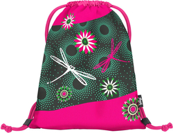 • Vrecko na cvičky alebo prezuvky z pevného umývateľného materiálu.• Zaťahovanie pomocou pevných šnúrok, ktoré zároveň umožňujú nosenie na chrbte.