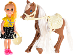 Krásna bábika s jazdeckou helmou a figúrkou osedlaného koníka.