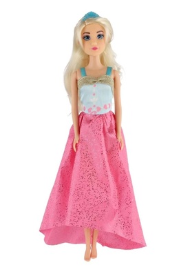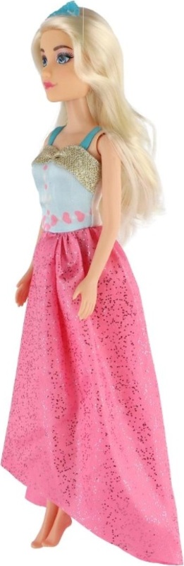 Dlhá ružová sukňa s leskom a kontrastným modrým živôtikom dodáva bábike výnimočný vzhľad – ideálny na bál aj módnu prehliadku.