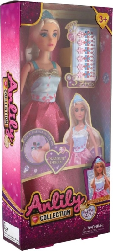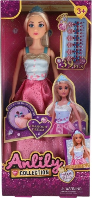 Kúzelná bábika Anlily v dlhých trblietavých šatách je pripravená zažiariť v každom detskom šatníku. Vďaka trblietavým „diamantom“, dlhým blond vlasom a ohybným končatinám ponúka hodiny kreatívnej zábavy, prezliekania a rozprávania rozprávkových príbehov.