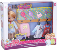 Obsahuje: bábiku, cestovný kufor, 2oblečky, 2hrebene, kabelku, korunku