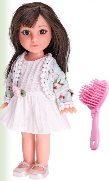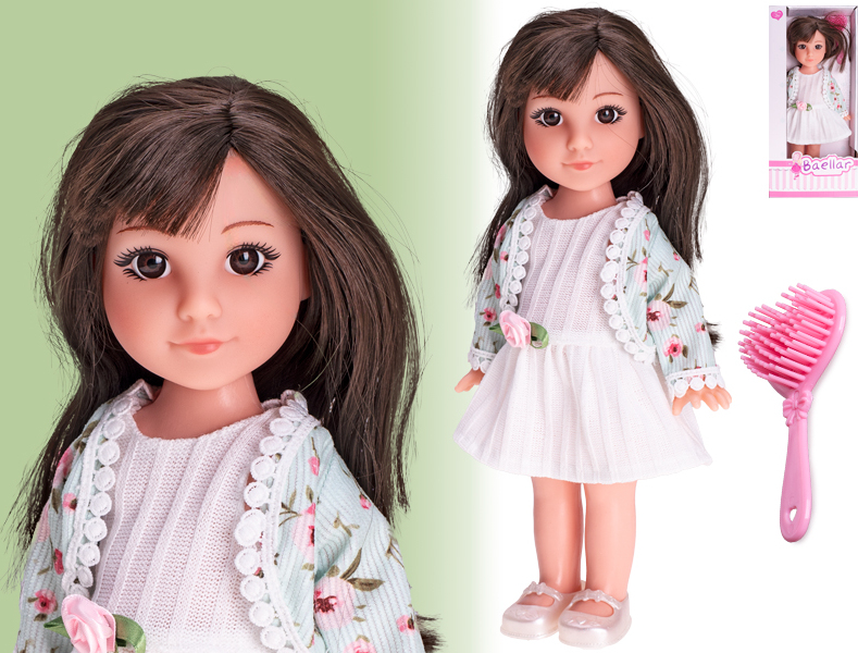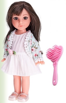 Krásna módna bábika má tvrdé telo a dlhé vlasy. Bábika má rozkošné šaty s bolerkom. Nechýba ani ružová kefa na prečesávanie vláskov.