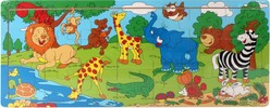 Drevené doskové puzzle s motívom zvieratiek zo ZOO. Puzzle sa skladajú z 21 dielikov.
