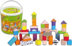 Farebné kocky s potlačou - drevené kocky v praktickom vedierku s vekom.