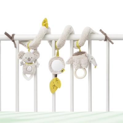 Aktivity špirála Australia je roztomilým doplnkom na hranie pre Vaše zlatíčko. Vďaka svojmu flexibilnému tvaru je možné ju využiť v kočíku, detskej postieľke, na cestách v aute, ale aj všade tam, kde to uznáte za vhodné. Obsahuje niekoľko prvkov, ktoré zamestnajú všetky vnemy dieťatka. Hrkálka zaujme zvedavé detské ušká, zrkadielko láka očká a využitie rôznych materiálov a tiež integrovaného hryzátka, sa postarajú o to, že hračka zamestná naozaj všetky zmysly Vášho maličkého.