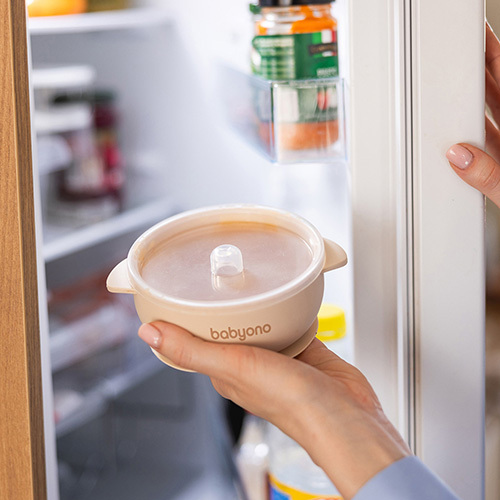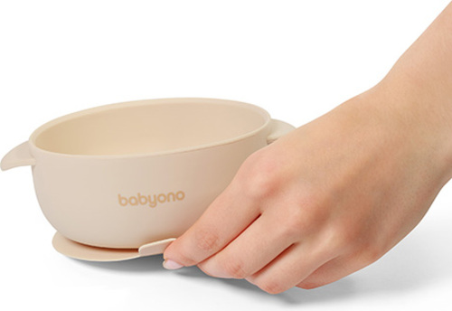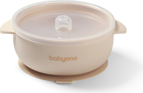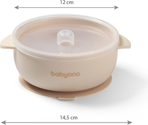 BABYONO Miska silikónová s prísavkou a viečkom béžová 6m+