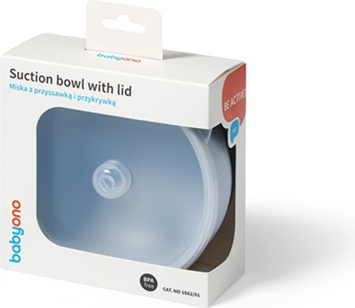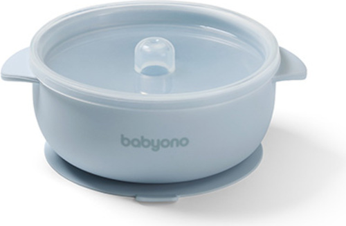 BABYONO Miska silikónová s prísavkou a viečkom modrá 6m+