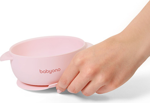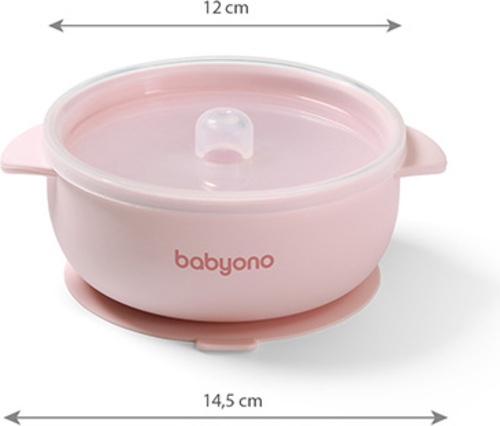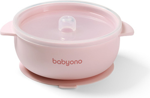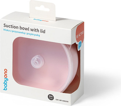 BABYONO Miska silikónová s prísavkou a viečkom ružová 6m+
