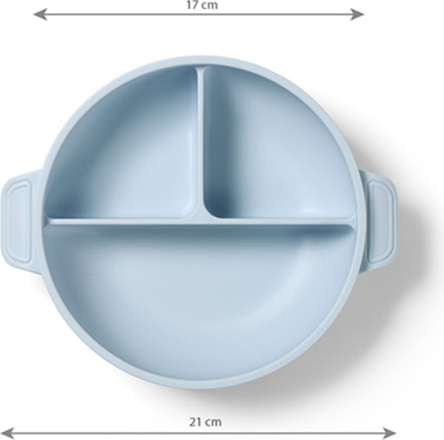Umožní dieťaťu ochutnávať nové chute, podporuje samostatné kŕmenie a vďaka prísavke udrží tanier pevne na mieste – bez rizika prevrátenia. Viečko udrží jedlo teplé a čerstvé, takže môžete pripraviť jedlo vopred alebo uschovať zvyšky na neskôr. Tri samostatné priehradky umožňujú servírovať rôzne druhy jedál bez miešania chutí. Zaoblené okraje a vyššie steny uľahčujú naberanie jedla, či už rukou alebo príborom.