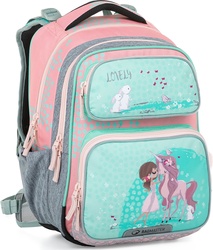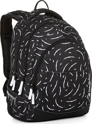 Zoznámte sa so Supernova, čiernym, bielym a tyrkysovým batohom. Má anatomicky tvarovaný chrbát a mäkké ramenné popruhy. Váži len 0,7 kg. Školáčka môže zbaliť knihy a dobrú desiatu. Všetko sa zmestí do troch priestranných priehradiek vrátane polstrovaného vrecka na notebook a dvoch bočných sieťovaných vreciek. Samozrejmosťou sú reflexné prvky a pomôcky na lepšiu organizáciu. Batoh bude verným pomocníkom vašej školáčky od 4. triedy až po základnú školu. .