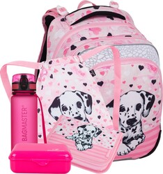 Batoh pre malé školáčky od 1. do 3. ročníka s dalmatíncom. Zaujme nielen svojím dizajnom, ale aj ľahkosťou - váži iba 0,98 kg. Vo vnútri sú tri veľké komory a organizér na drobnosti. Batoh s dalmatínskym motívom stojí na plastových nohách, chráni v tme svojimi reflexnými prvkami. Chrbtový systém s hrudným popruhom a bedrovým pásom má lekárske posúdenie. K batohu školáčky bude patriť peračník na písacie potreby a látková taška na papuče alebo športové oblečenie. K batohu bude pribalený peračník na písacie potreby, látkové vrecko na papuče a súprava na desiatu.