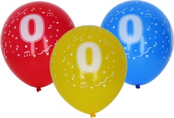 Balónik nafukovací 30cm - sada 5ks, s číslom 0