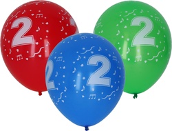 Balónik nafukovací 30cm - sada 5ks, s číslom 2