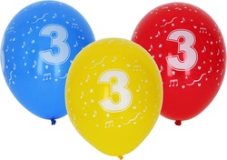 Balónik nafukovací 30cm - sada 5ks, s číslom 3