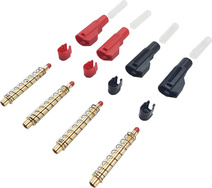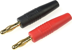 Pozlátené banániky červené + čierne 4.0 mm. Balenie obsahuje 1 sadu.