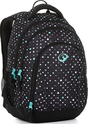 Zoznámte sa so Supernova, čiernym, bielym a tyrkysovým batohom. Má anatomicky tvarovaný chrbát a mäkké ramenné popruhy. Váži len 0,7 kg. Školáčka môže zbaliť knihy a dobrú desiatu. Všetko sa zmestí do troch priestranných priehradiek vrátane polstrovaného vrecka na notebook a dvoch bočných sieťovaných vreciek. Samozrejmosťou sú reflexné prvky a pomôcky na lepšiu organizáciu. Batoh bude verným pomocníkom vašej školáčky od 4. triedy až po základnú školu.