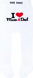 Bavlnené pančucháčky New Baby. Pančucháčky majú roztomilý obrázok na zadočku s nápisom I Love Mum and Dad. Na jednej nožičke je nápis I Love Mum a na druhej I Love Dad.