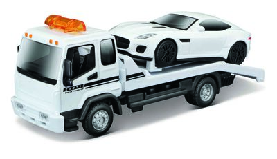 Bburago 1:43 STR FIRE Flatbed Tow Truck, w/Jaguar F-Type R Dynamic (V6)