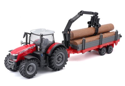 Bburago 1:50 Farm Traktor Massey FERGUSSON 8740S Tractor con remolque de troncos