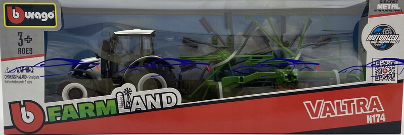 Bburago Farm 10cm Tractor with Deluxe Trailer - Valtra N174 - Whirl Rake