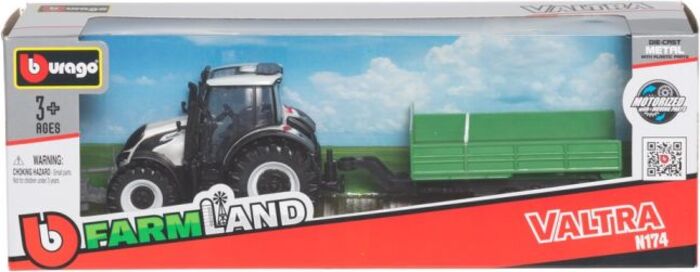 Bburago Farm 10cm Tractor with Trailer - Valtra N174 - Tipping Trailer