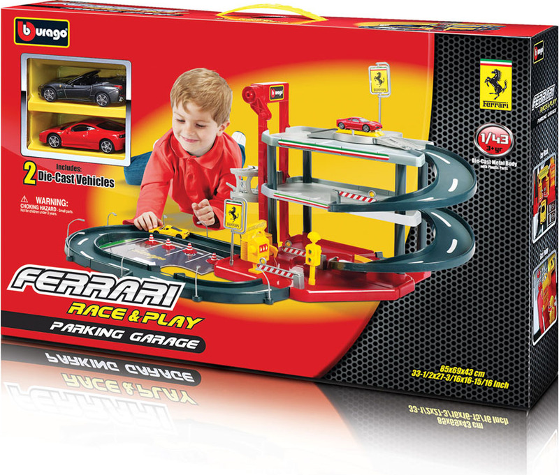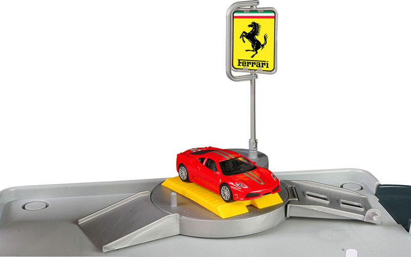 Bburago Ferrari Parking Garage s dvoma autíčkami 31204, výrobca BBurago. Trojposchodová garáž s príslušenstvom: