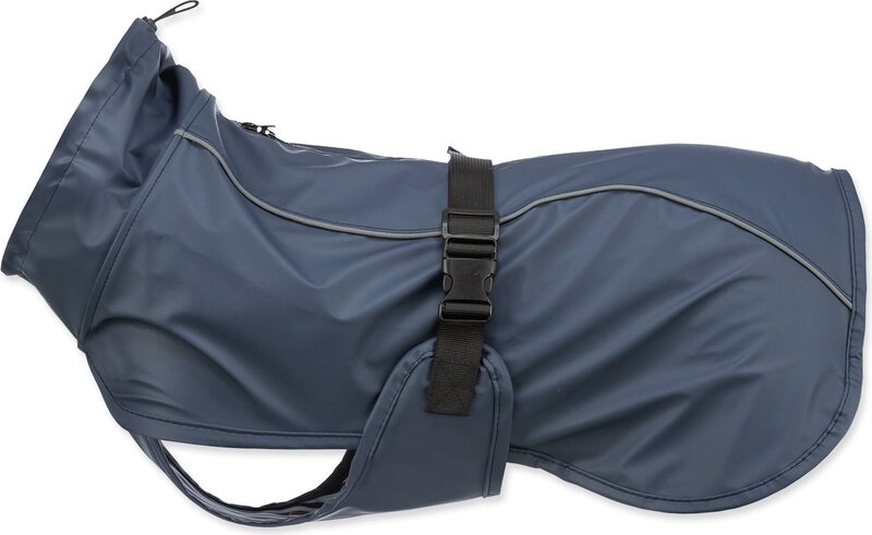 Pláštenka s vyšším krkom. Nastaviteľná okolo krku a cez brucho.